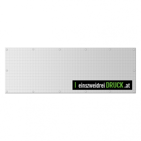 Plane, Banner, Netztransparent, Netzbanner mit Ösen und Saum. Eine Meshplane, ein Netztransparent, ein Netzbanner ist winddurchlässig und kann daher im Außenbereich bedenkenlos verwendet werden.